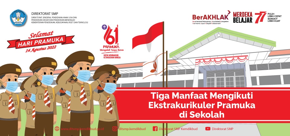 Tahukah Sobat SMP bahwa setiap tanggal 14 Agustus diperingati sebagai Hari Pramuka? Ya, tanggal 14 Agustus 2022 ini merupakan peringatan Hari Pramuka ke-61. Hari Pramuka sendiri ditetapkan pertama kali pada 14 Agustus 1961 saat Gerakan Pramuka diperk...